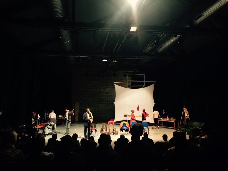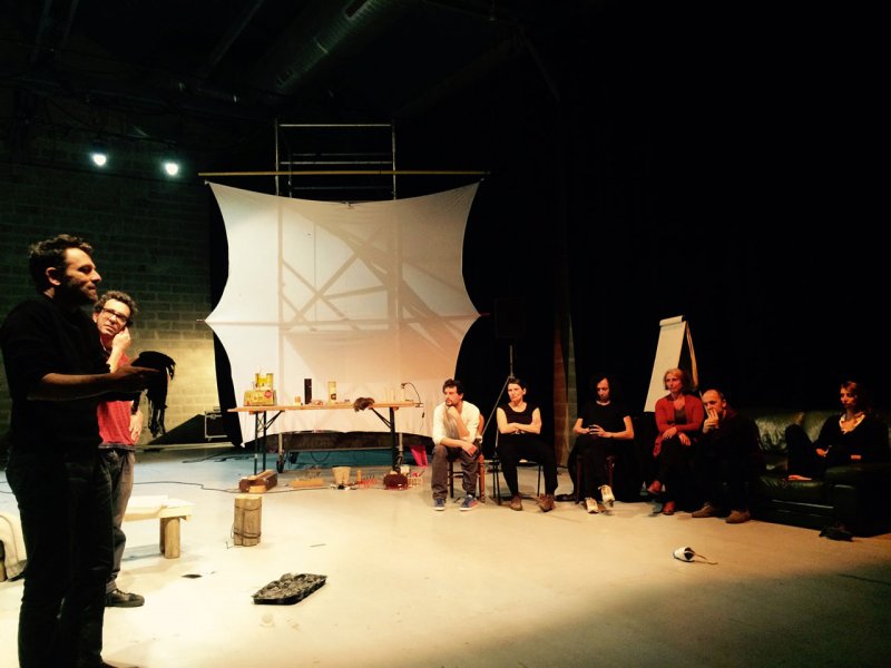 Derrière le titre à rallonge de leur dernière création se cacherait donc un spectacle sur la répétition d’un spectacle qui traiterait de la répétition d’un spectacle sur… Pour être plus précis, disons que les comédiens jouent des comédiens qui viendraient de terminer un temps de résidence en prévision de leur prochaine création… Ok, vous êtes perdus, c’est rassurant, car nous le sommes aussi !