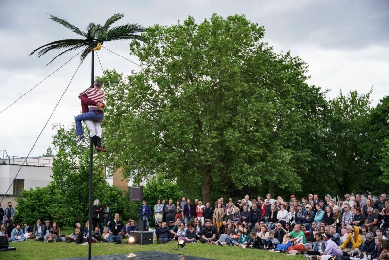 Le point de départ de cette création d’Arnaud Saury et Samuel Rodrigues est le désir de faire se rencontrer leurs disciplines. L’un est acteur, l’autre circassien ; l’un bavard, l’autre plutôt taiseux. Ensemble, ils tenteront l’entreprise un peu absurde de se retrouver sur un mât chinois de cinq mètres cinquante ! Malgré la peur de l’inconnu, malgré le risque, ce qu’ils nomment la « perche andalouse » sera l’agrès de leur conversation, leur terrain de jeu et d’exploration.