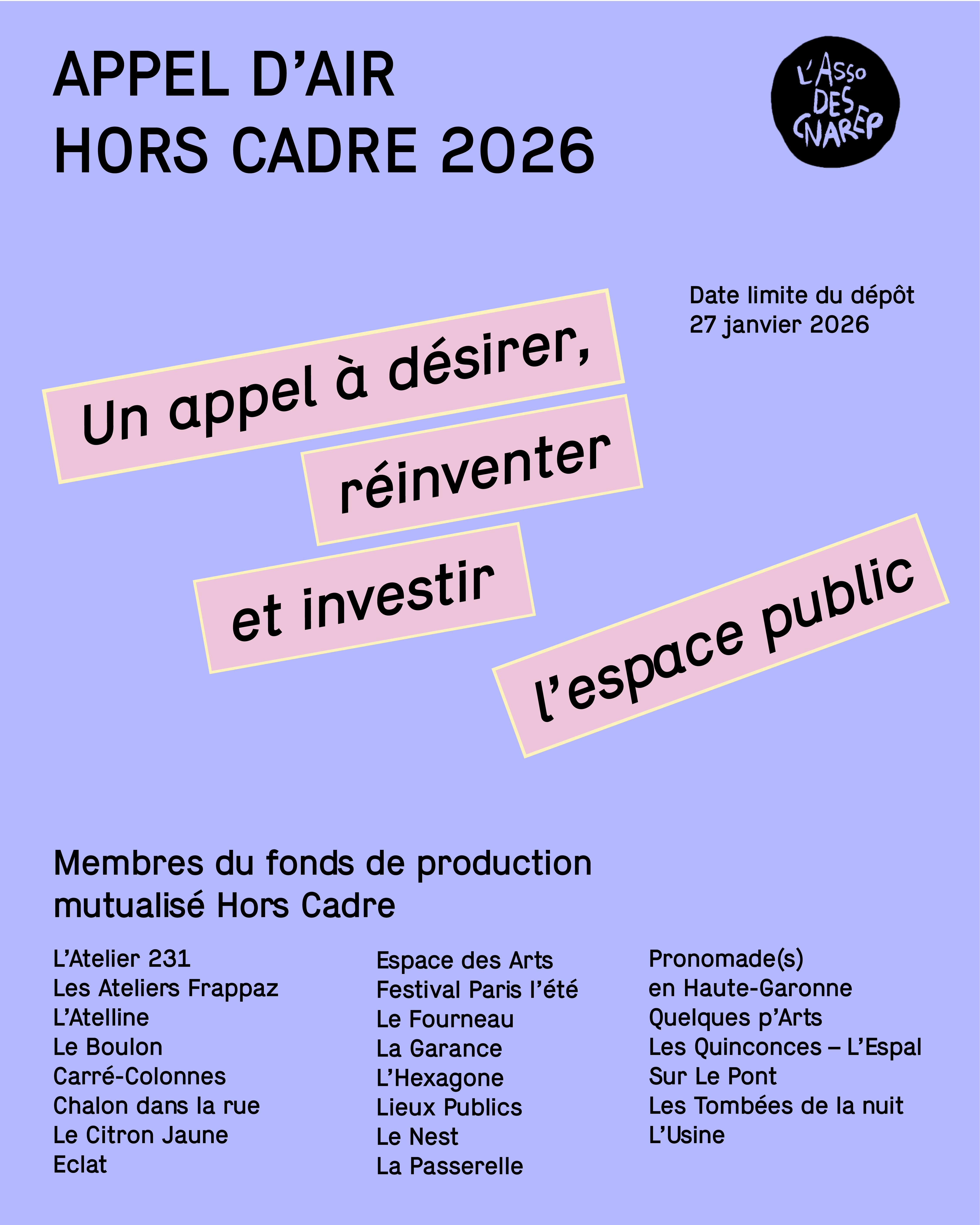 L’Association des CNAREP lance l’appel d’air 2026 et invite les artistes, compagnies, collectifs issus de tous les champs de la création contemporaine à DESIRER, REINVENTER & INVESTIR l’espace public.