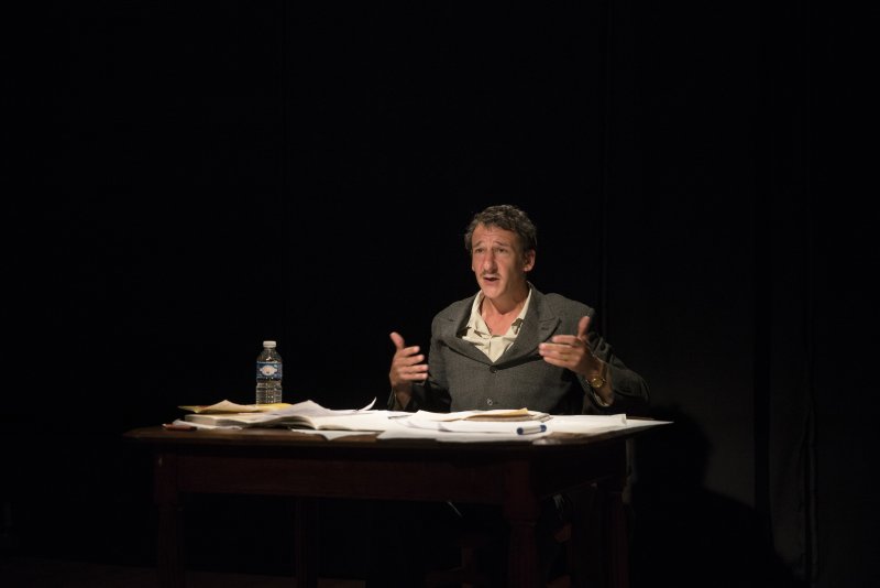 Derrière sa table, entre ombre et lumière, il interroge les difformités, les anomalies d’un monde qui nous collent parfois trop au visage… une occasion pour lui de tomber (un peu !) ce masque d’Elephant Man.