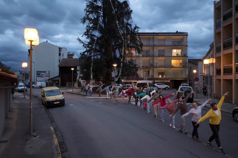 "Nous sommes plus d’une vingtaine de performeur.euse.s, réuni.e.s par l’envie de transformer nos relations aux espaces de vie. Principalement issu.e.s du monde du théâtre, nous avons eu le désir de travailler en dehors des salles dédiées à la représentation, et avons fait des lieux du quotidien nos terrains de jeu. Le dispositif de départ de nos performances est simple : des corps interprétant l’espace.