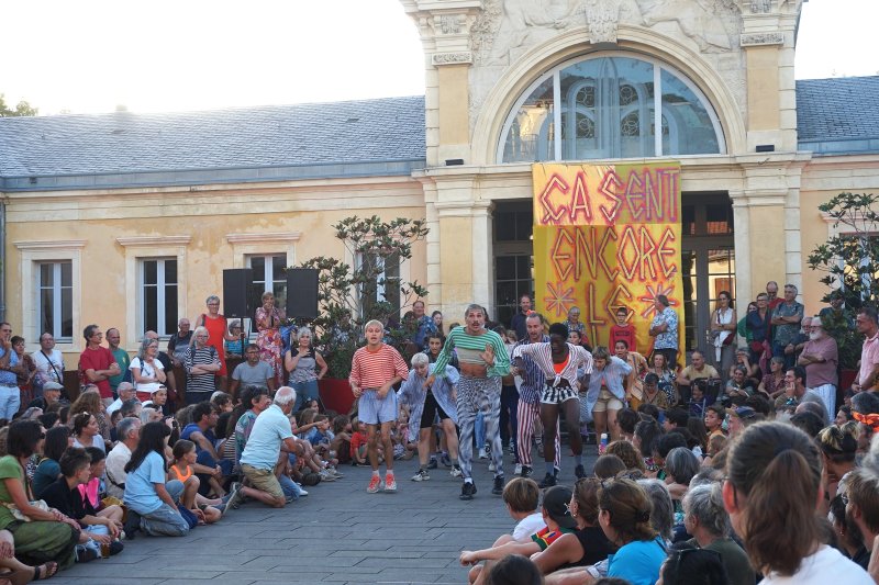 En août 2023, ces trois collectifs sont programmés dans la sélection IN du Festival d’Aurillac. De ce moment, où ils partagent l’espace public pour s’y déployer, naît l’idée d’une collaboration commune autour d’une thématique alliant pluridisciplinarité artistique, espace public et surtout, puissance collective : le carnaval.
