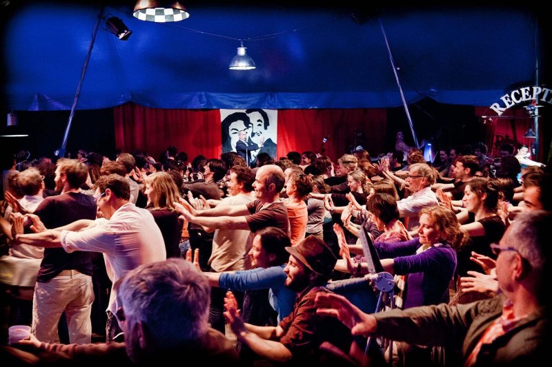 La piste à dansoire, c’est donc un bal, une invitation générale à danser, simple et conviviale… comme une jolie fête populaire ! Et autant vous dire que ce rendez-vous a tout pour être une très bonne soirée : un Bistronomade(s) pour se restaurer, des guirlandes de guinguette colorées, un orchestre de musiciens jouant en direct, des meneurs de piste enjoués et même une costumerie où vous pourrez composer votre tenue de lumière ! Costume élégant, robe à pois ou pantalon flashy, vous trouverez assurément le vêtement qui vous fera sentir reine ou roi de la piste ! Seul, à dix, avec ou sans partenaire, habitué du parquet de bal ou débutant, il y en aura pour tous les goûts et tous les styles : valse, mazurka, tarentelle, swing, forró, tango, cumbia, rock ou encore cha-cha-cha… Dansons, dansez !