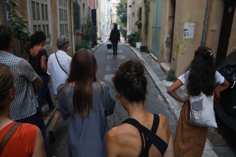 A la croisée du théâtre, de la danse et de la littérature, leurs formes viennent se confronter à l’énergie brute de la rue. Ils cherchent à guetter leur impressions de ville, « ce qui se trame à l’intérieur du ventre quand tu traverses une place publique ou que tu piétines à un arrêt de bus. »