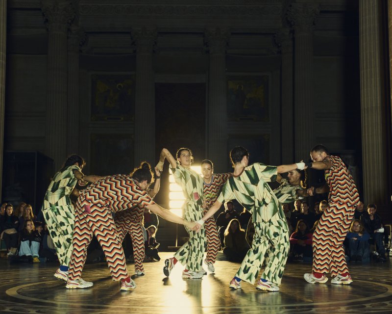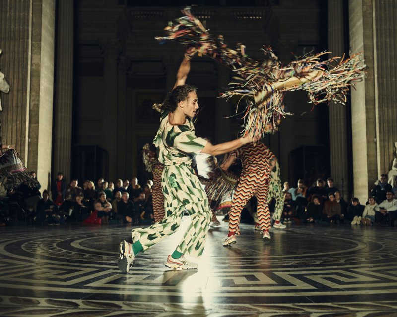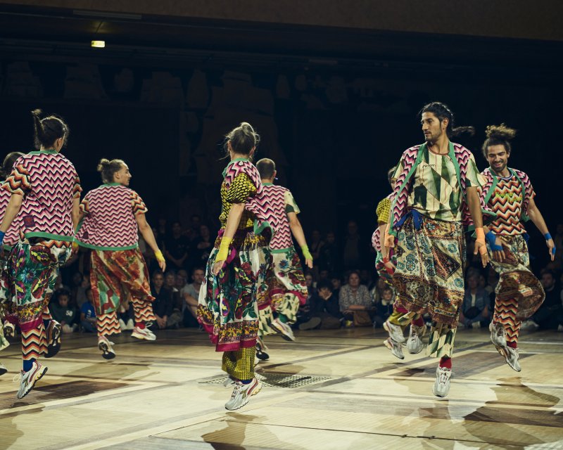 Chorégraphie hypnotique et improvisation musicale, entre folklore trad’ et électro, explorent le motif de la circularité. Dans ce rituel magique et presque incantatoire, huit danseurs et danseuses, toujours main dans la main, vous donneront (certainement !) le tournis. Cette expérience magnétique d’un corps collectif célèbre à la fois le lien qui nous unit et l’énergie qui nous met en mouvement. L’onde augmente et se propage jusqu’à la transe. Les rythmes changent, les gestes des interprètes font et défont le cercle, ça bouge. Il se peut que RONDES vous emporte.
