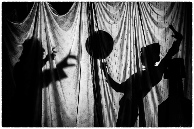 Avec beaucoup d’humour et pas moins de poésie, entre ombre et lumière, dans un univers évoquant aussi bien les clowns de Fellini que l’atmosphère d’En attendant Godot de Beckett, deux personnages sont réunis « entre vieilles gloires et nouvelles possibilités ».